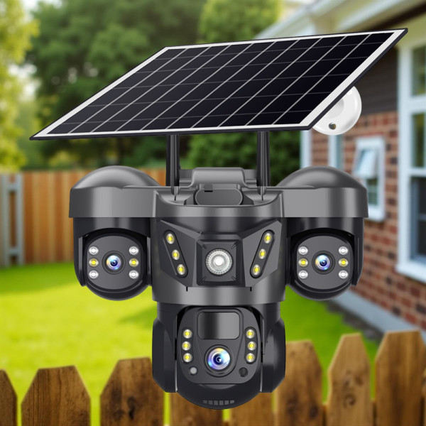 Вулична Wi-Fi IP камера VTS29 відеоспостереження 6K з трьома об'єктивами Чорна