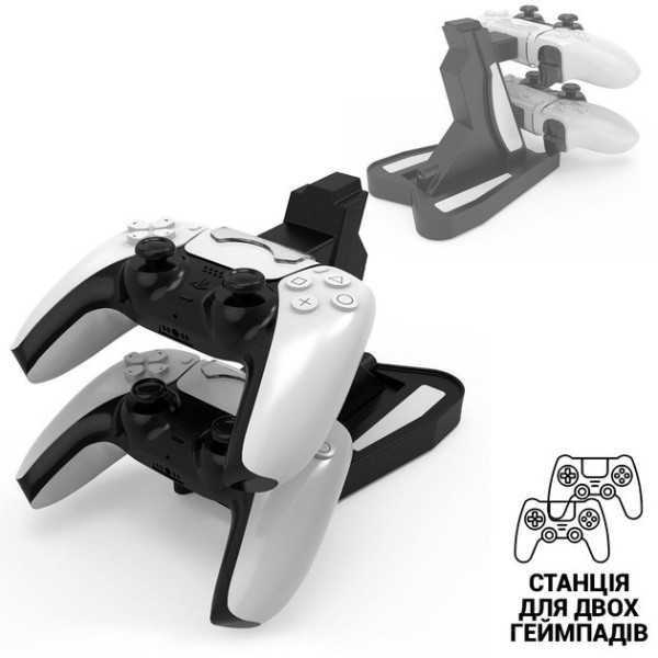 Зарядна док-станція для 5 — це зручне рішення для одночасного заряджання двох бездротових контролерів DualSense. Підставка обладнана двома роз'ємами Type-C, що дає змогу швидко й безпечно встановлювати геймпади для заряджання.