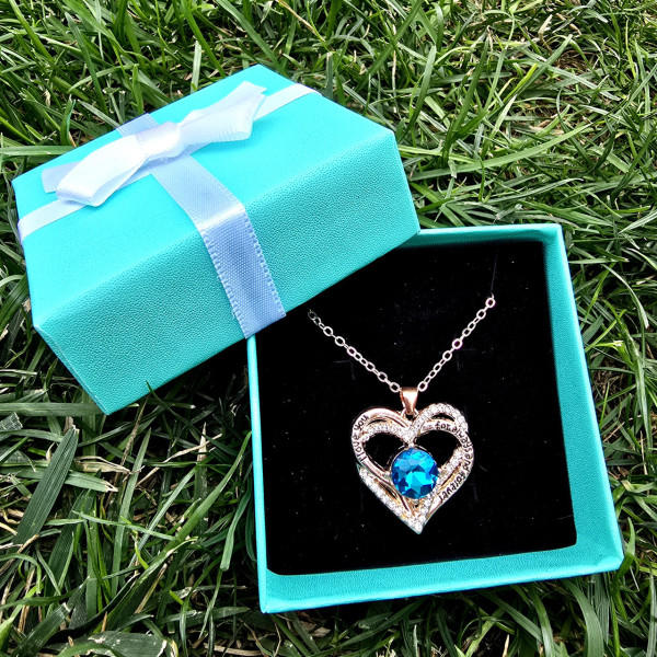 Жіноче золоте намисто Heart Love з блакитним цирконієвим каменем