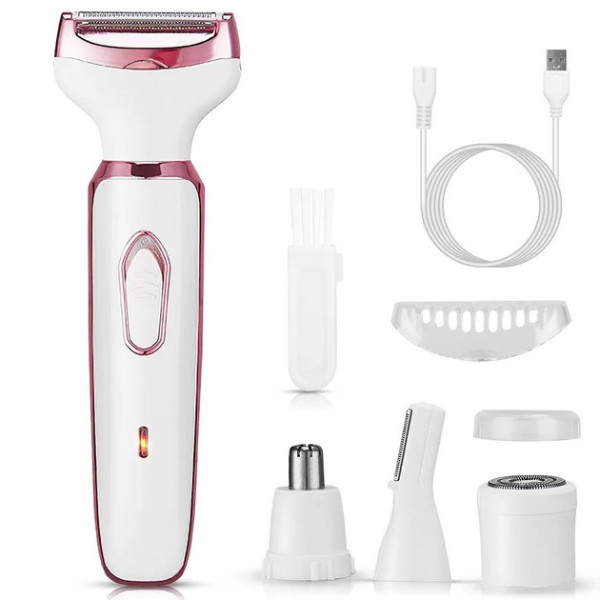 Епілятор обладнаний чотирма насадками: для корекції брів і обличчя, для видалення волосся в носі та вухах, для гоління зони бікіні та класичної епіляції ніг і тіла. Такий набір робить прилад максимально практичним і зручним, даючи змогу використовувати його для різних ділянок шкіри.
