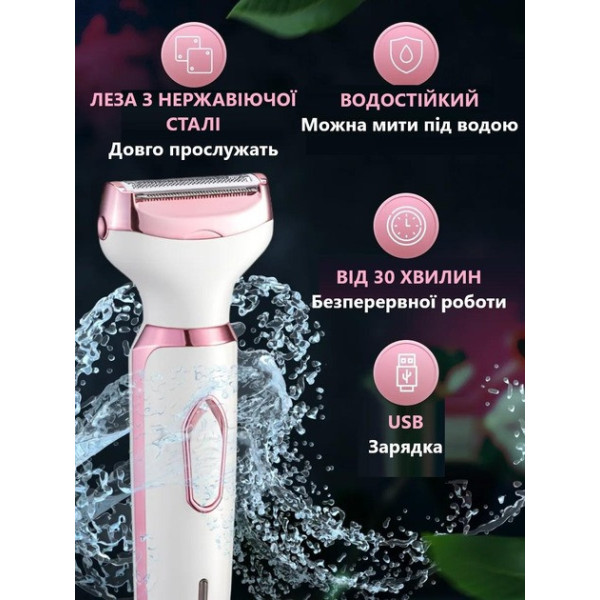 Насадки: тример для обличчя та брів, насадка для носа та вух, насадка для зони бікіні, епілятор для ніг і тіла