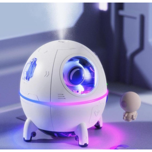 Зволожувач повітря з нічником у формі космонавта — це не тільки практичний пристрій для підтримки комфортного мікроклімату, але й елемент інтер'єру. Його незвичайний дизайн у формі космічного корабля відразу привертає увагу та чудово підходить для спальні, дитячої кімнати або офісу.